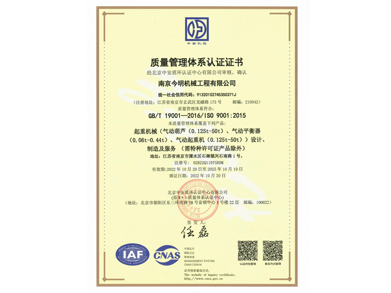 南京今明機械工程有限公司成立于一九九三年,歷經二十多年磨練,沉淀了一批跟隨企業共同成長,技藝超凡、資深的高級工程師、技師、以及熟練的技術工人。企業的歷練和人才的智慧,鑄造出企業的核心競爭力。十年磨一劍。本著技術興業,多年來,企業致力于氣動起重產品的研發與生產。在國內氣動起重裝備領域具有良好的聲譽。并積極地與國家起重運輸機械質量監督檢驗中心、北京起重運輸機械設計研究院、江蘇省科技廳、南航等高校和科研單位緊密合作,與國外知名企業建立戰略合作伙伴關系,廣泛吸收國內外新技術經驗,力求趕超國際先進氣動起重裝備的技術,打造國內氣動起重裝備行業新軍。目前,企業已開發五大系列近百個品種的產品,覆蓋了化工、汽車、機械、冶金、礦山等二十多個行業,并在全國三十多個省份擁有客戶。企業堅持用心做好每個環節,精心打造讓客戶滿意的產品,力求...